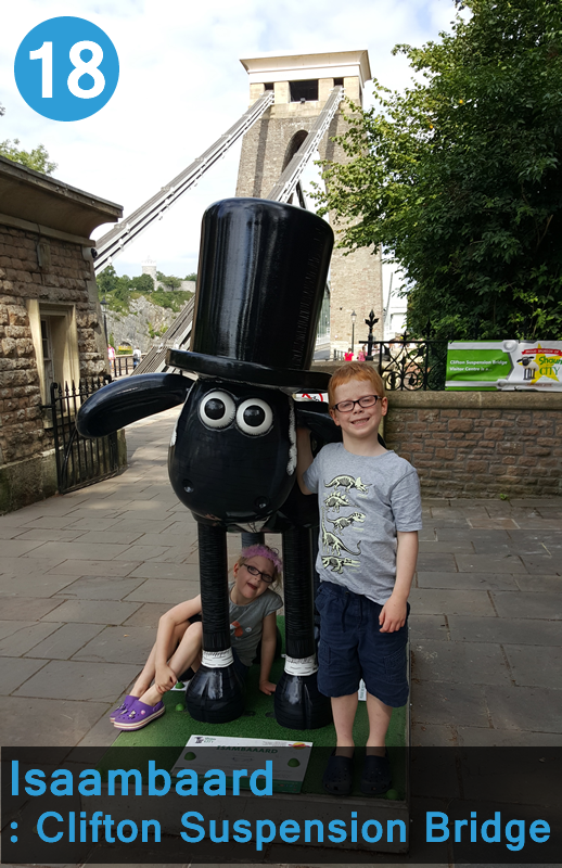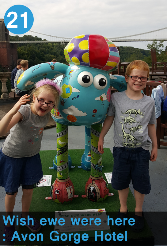 Yay we are back hunting the famous sheep again – in his own home town no less. With 70 in Bristol I’m not sure we’ll complete them all but we made a good start today. We are staying in the lovely Clifton area and have a view of the spectacular suspension bridge. We were lucky enough to walk over that today during our hunt. Gorgeous gorge views. It’s really lovely.
