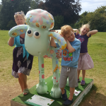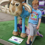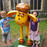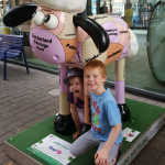 Big day Shaun hunting today. We attacked the Old City trail first and with only a few misreads of the map found all 10 Shauns by lunchtime. Not a moment too soon probably. Luckily lunch took place at a lovely playground. Highlights of this trail and maybe the entire hunting – Woolly Wonderland. The entire sheep was covered in an elaborate Woolly jumper that took 500 hours to make. No wonder it’s the only Shaun we’ve seen fenced off. This was Grandma’s favourite for the day. We also visited the Wallet & Gromit Charity store to spend a bit of pocket money. Emma got a Shaun that wiggles it’s tail when you pull it and Sam got another set of beloved Top Trumps.