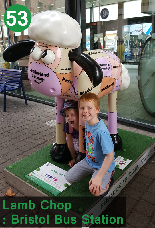 Big day Shaun hunting today. We attacked the Old City trail first and with only a few misreads of the map found all 10 Shauns by lunchtime. Not a moment too soon probably. Luckily lunch took place at a lovely playground. Highlights of this trail and maybe the entire hunting – Woolly Wonderland. The entire sheep was covered in an elaborate Woolly jumper that took 500 hours to make. No wonder it’s the only Shaun we’ve seen fenced off. This was Grandma’s favourite for the day. We also visited the Wallet & Gromit Charity store to spend a bit of pocket money. Emma got a Shaun that wiggles it’s tail when you pull it and Sam got another set of beloved Top Trumps.