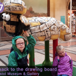 So with the rain due at 11am we made an early start on the Harbourside trail ticking off our first Shaun before 9am and earning our Shaun at Breakfast trophy on the app. We worked backwards through half of this trail from 40-35. The children enjoyed the harbour side and all its sites as well as the sheep. We all thought the whale with its recycled water bottle waves and water bottle lids dripping from the tail was really effective. We found a Shaun Exhibit in a store all about sustainability which continued the themes from the harbourside. But more importantly there was a giant Shaun inside that I think Emma would have liked to have taken home with us.