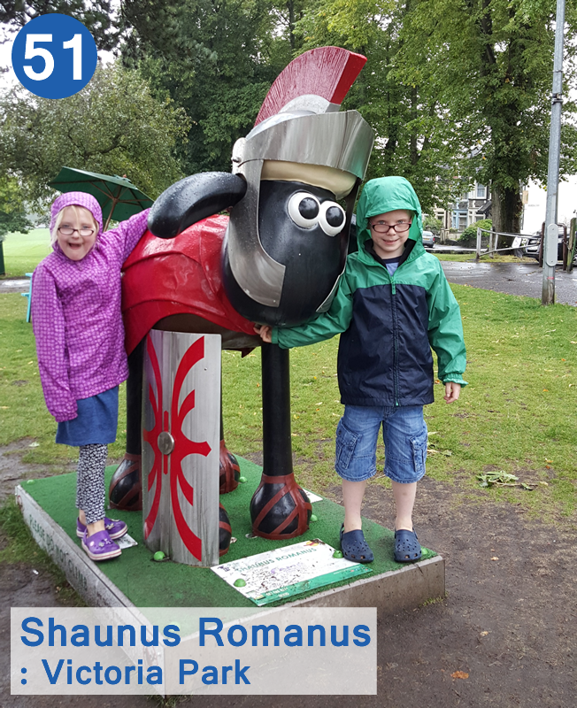 The rain arrived early and just as we finished the bit of the Harbourside trail on our list for today. So with rain coats on we started the Heritage trail. My favourite Shaun of the day was on this trail – King Arthur of Lambelot & Excalibaar!. We got a great photo even in the drizzle. Sam found his favourite in this trail too….Rex – yep a T-Rex even. My dino-obsessed boy was in his element. Arabian Lights was quite elaborate being plugged in with lights shining through and the photo didn’t quite do that one justice. This trail was very busy with queues at many of the Shauns so along with the rain we didn’t really muck about and soon we were finished by 12pm.