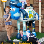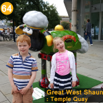 Due to some cunning car parking we could head back to the car from here with only a short walk, and along the way we found a bonus Shaun on a boat. This was not an official Shaun or part of the trail, but a local child told us he was included in last year’s Gromit trail. Emma called him Mermaid Shaun.