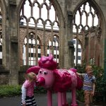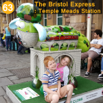 The rain stayed away today which was a bonus for us as most of our hunt was on foot – just moving the car once to a second parking location. We began bright and early again this morning and started and completed the Temple trail. Highlight for everyone today was The Bristol Express Shaun, with his bridge legs and lovely art work. On his mate, also at the station Emma found a secret message under Shaun’s belly, which excited her. Again we met many Shaun hunters, some of whom were following our same route, so a race between us ensued for a few Shauns. Emma and Sam like Bingo this morning which was colourful and covered in numbers. Overall for me it was the scenery of the Quays that stood out rather than the Shaun’s themselves today. I really enjoyed the gorgeous ruin of Temple Church. The dark cloud set the ruin out from the sky making for some pretty pictures.