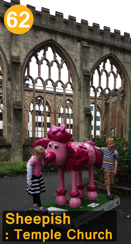 The rain stayed away today which was a bonus for us as most of our hunt was on foot – just moving the car once to a second parking location. We began bright and early again this morning and started and completed the Temple trail. Highlight for everyone today was The Bristol Express Shaun, with his bridge legs and lovely art work. On his mate, also at the station Emma found a secret message under Shaun’s belly, which excited her. Again we met many Shaun hunters, some of whom were following our same route, so a race between us ensued for a few Shauns. Emma and Sam like Bingo this morning which was colourful and covered in numbers. Overall for me it was the scenery of the Quays that stood out rather than the Shaun’s themselves today. I really enjoyed the gorgeous ruin of Temple Church. The dark cloud set the ruin out from the sky making for some pretty pictures.