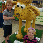 Our last day of Shaun hunting! We had the final 7 Shauns from the Sheep drive trail to tick off. This was a driving trail which suited us as everyone had pretty sore feet by now. Our first stop was The Mall at Cribbs Causeway, which is also home to the Official Shaun the Sheep trail shop. We got to get up close and personal with a Gromit from last years trail. In addition there was a display of Shauns created by the local schools. Some of them were so clever – Sam was quite taken with Sea Shaun (Mummy it’s like Sea Shore!). We loved all 3 Shauns here. Fab-ewe-lous had a few jokes written on it, Bee-dazzled had sparkly sequins, and Shrek Shaun was also pretty cool. He was in the store itself.