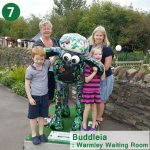 A short distance away we found Melonie in Staple hill leaving us only one more to find. Just before we got there, we spotted a Gromit in the wild. And then it was onto Warmley Waiting room (now a cafe) for our last Shaun. I almost didn’t want to find it as it meant the end of our hunting mission. Buddleia was absolutely lovely and worthy of being our last Shaun.