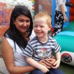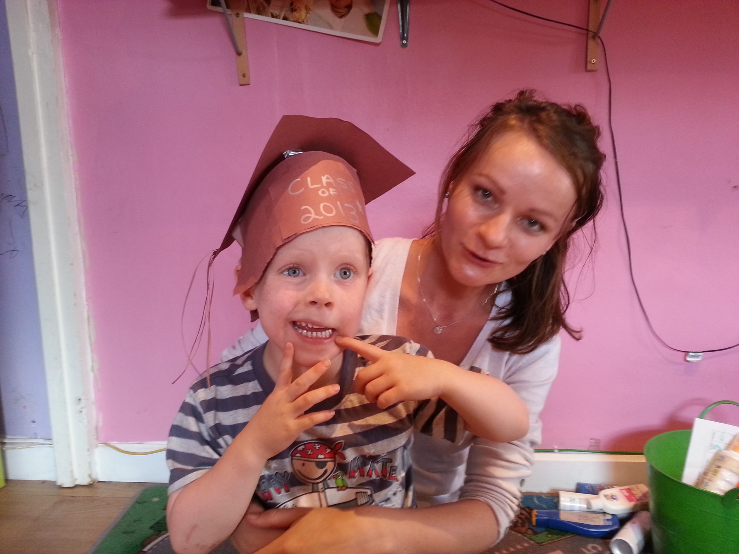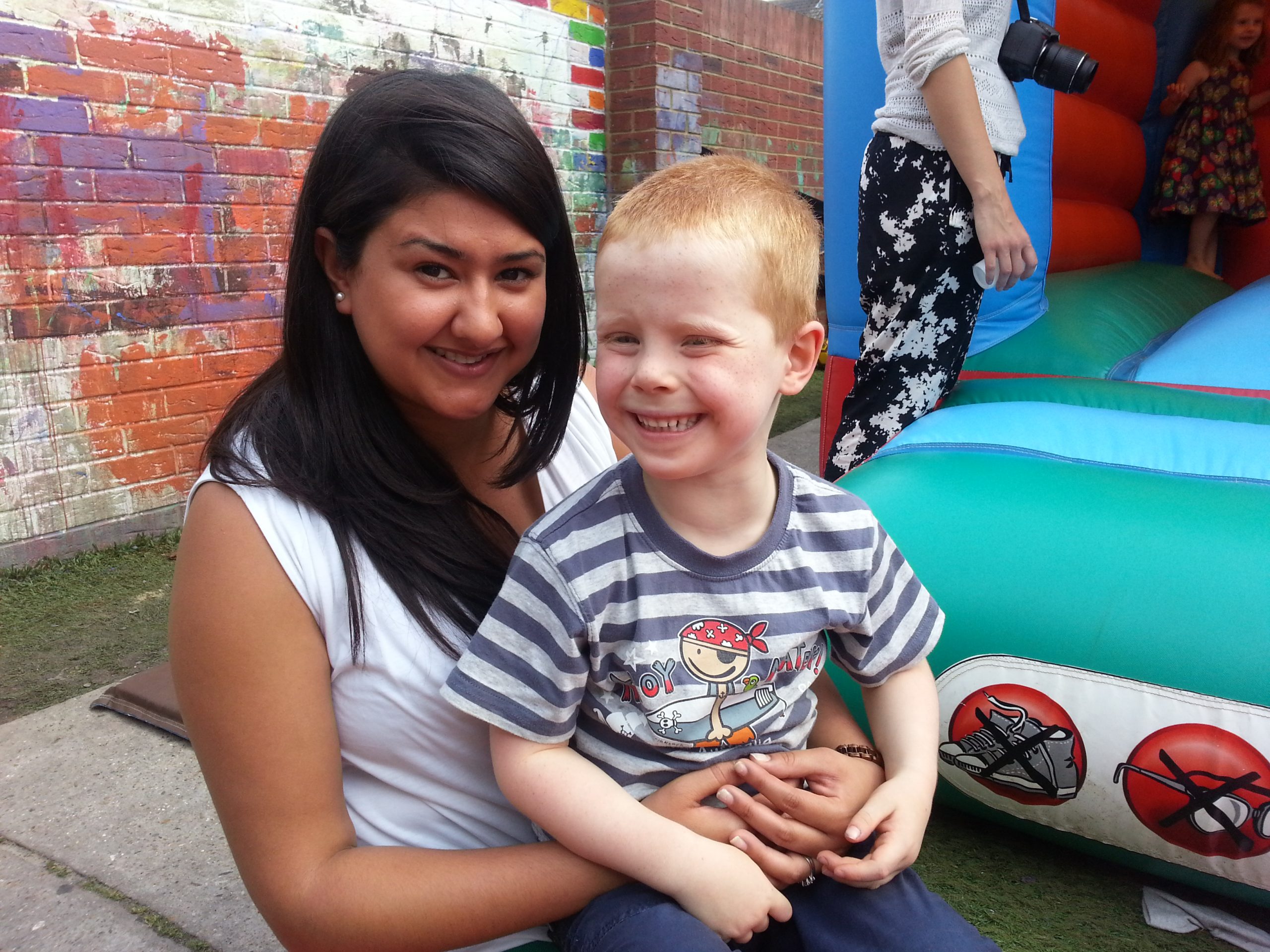 Sam with his first teacher Avnette, who left in September (but was back for the party). Sam’s second teacher at Milkshake was Kitty, who has been so understanding, gentle and nurturing with Sam which has really boosted his confidence. Kitty went on holiday early this year, so Sam also had a picture with Cat.
